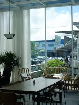 Taking advantage of the Easter long weekend, I went on a short trip to the western coast of Johor. On the second afternoon, I visited a seaside café built on stilts above the water. The moment I stepped through the side entrance, the large blue sky visible through several floor-to-ceiling windows instantly brought back memories of Okinawa’s Kouri Island.