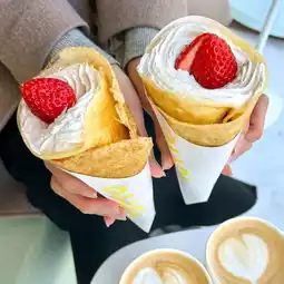 The vegan crepe is made with tapioca flour, brown rice flour, cornstarch, chia seeds, soy milk and maple in the batter, giving it a savory and sticky texture! It is gluten and white sugar free and healthy to enjoy.