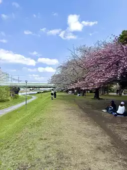 If you’re looking for a peaceful spot to enjoy spring in Tokyo, Kyunakagawa Mizube Park is a lovely choice! Nestled along the river in Kameido, this local gem offers beautiful cherry blossoms in full bloom during spring. The path is lined with flowers, creating a gentle, calming atmosphere that’s perfect for a relaxing walk or a quiet picnic.