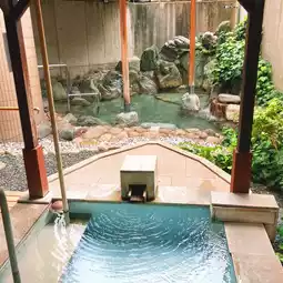 Kotosankaku is a hot spring inn with three baths: Hitenkan, reserved for guests only, and Sansuikan.