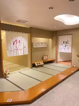 There are saunas, open-air baths, and a massage area called 'Ashiyasume.' The women's open-air bath had roses floating in it at night and orchids in the morning.