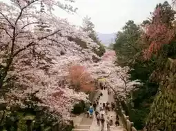 When I visited Kotohira-gu Shrine in April, I saw the approach to the shrine was covered with a sea of blooming cherry blossoms on both sides, which was so beautiful that I couldn't take my eyes off it! The colorful and pink cherry blossoms, set against the stone steps and temples of the ancient temple, and the slightly cloudy weather, really reach new heights of beauty.