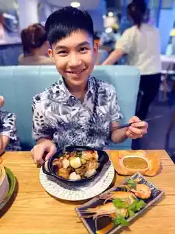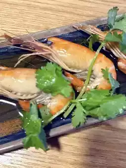 The shrimp meat is bouncy, and it tastes good with the flower-shaped pork belly.