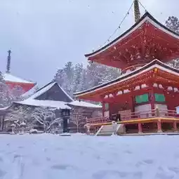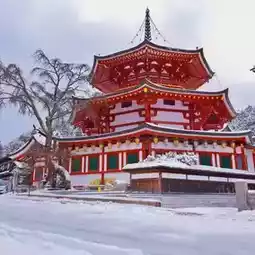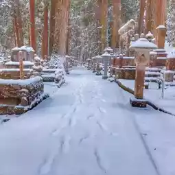 The sacred land on the top of Mount Koya, a high mountain range in the Kansai region, Koyasan in winter has a beautiful view like a dream.