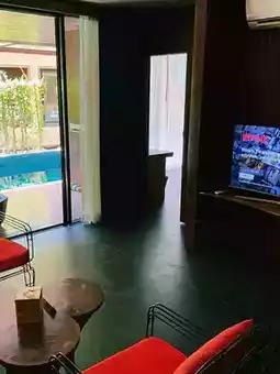 It's on Railay East, which is a pleasant walk from the busier Railay West. Railay West's strolling strip, which is lined with restaurants and bars, is about 5 minutes away. The hotel was kept clean, and the front of the building includes a lovely bar/restaurant area that serves breakfast, lunch, and dinner. There was also live music in the nights. Breakfast was adequate, and it was included in our room cost. We didn't try the lunch or supper menus. When we arrived, our accommodation was upgraded to a corner suite, which was a great gesture from the staff, and we appreciated it. It was spotless, large, and had a nice bed on the balcony area where we could rest and watch Netflix.