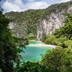 Koh Hong or Koh Hong, Krabi Province is a popular tourist destination for both Thai and foreign tourists. Koh Hong itself is divided into two parts: the side with beaches and clear water surrounded by limestone mountains and a viewpoint on top of the limestone mountains. The other side is called Koh Hong Lagoon, an emerald green pool surrounded by limestone mountains as well.