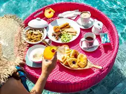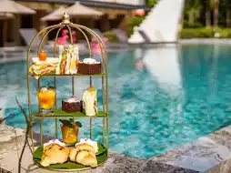 The swimming pool also has cute pink flamingos. Soak in the water and enjoy the mountain view.