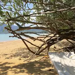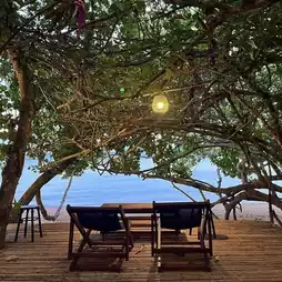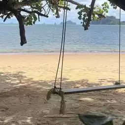 This seaside cafe in Ao Nam Mao, Krabi, is beautifully decorated with natural materials and has many photo spots.