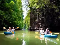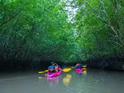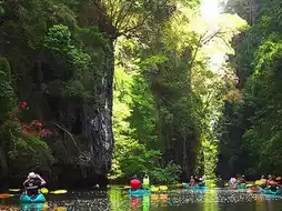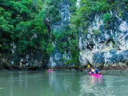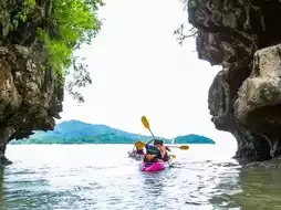 Ao Tha Len is considered one of the most beautiful bays in Thailand. Surrounded by towering limestone cliffs and picturesque offshore islands, it's the perfect spot for kayaking. As you glide along the water, you'll discover hidden passages and marvel at the lush, tranquil ecosystems away from the crowds. Admire the diverse nature and wildlife, including rare bird species, monkeys, and more. Choose from a half-day kayaking trip or a full-day tour, complete with optional elephant trekking.