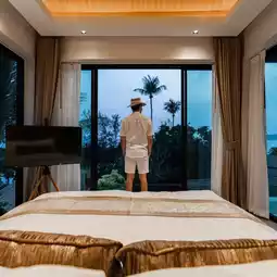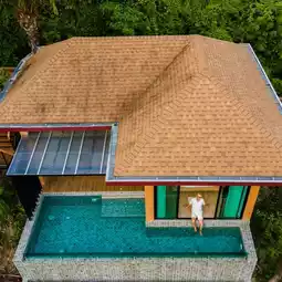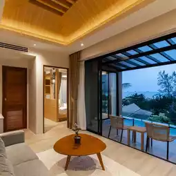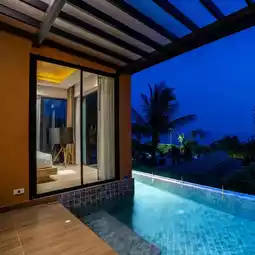 The villa is located at the top of the resort. There are only three backs. It consists of a bedroom, a living room, a bathroom with a bathtub with a window overlooking the view and a plunge pool overlooking Ao Nang all day long. There is also a floating breakfast service.