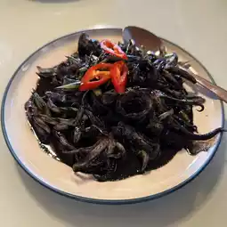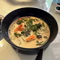 Recommended dishes include squid in black ink, sour curry with sea bass, and boiled coconut milk with morning glory and fresh shrimp. Every dish is very tasty and I give it a full score of ten.