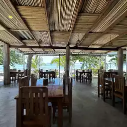 The restaurant has outdoor seating where you can enjoy the sea view or you can sit in the air-conditioned room inside.