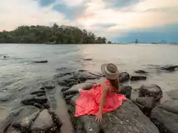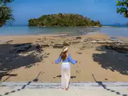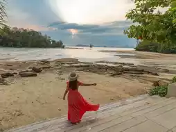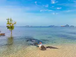 Escape the hustle and bustle to visit Krabi. If you are staying near Klong Muang Beach, try to stop by and walk along the beach. There are rocks to sit and take pictures of the view in front of you, Koh Kwang. The atmosphere is very beautiful. Sometimes when the sea level drops, the beach stretches to the island and we can walk to the island. The water in that area is shallow.
