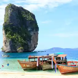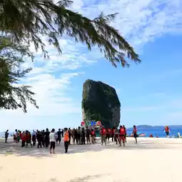 Koh Poda is an island in Hat Noppharat Thara-Mu Ko Phi Phi National Park, in front of Ao Nang, approximately 8 kilometers from the shore of Ao Nang. The highlight is at the front of the island, which has a fairly long beach. There is also fine white sand and beautiful clear water that you can see the bottom. It is suitable for walking or swimming in the sea.