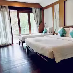 The way to get there is not difficult. The hotel is beautiful, natural, and located on the beach. There is a very large sandy beach. The area is spacious with parking and an outdoor swimming pool. If you stay in a room next to the pool, you can jump from your room into the pool. The beach next to the hotel is clean and quiet. If you want to do activities, you can choose to play kayaks and paddle boards. Most importantly, the hotel provides free services. The price of accommodation starts at 2500++ including breakfast. The price is not expensive. Plus, the beach is almost a private beach. The hotel's food is also delicious.