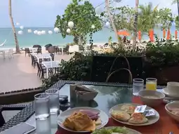 The Beach Bar & Restaurant is non-air-conditioned but not hot at all. But they also have an indoor area. There are many delicious menus.