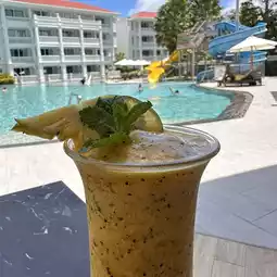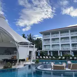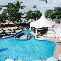 The highlight is that there are 2 large swimming pools. The first pool is in front of the hotel near the lobby. There is a slide to play and have fun. When you enter, you will see this beautiful blue swimming pool first.