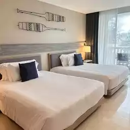 The room we stayed in was a Deluxe ocean view room. The view from the balcony is the swimming pool and the sea. The room is a good size. There are 2 5-foot beds. The big bed is very big. The pillows are very soft and comfortable to sleep on. Nearby, there is a sofa and a table to sit and eat something. It is in line with the standards of Centara hotels. The bathroom is a good size. There are shower gel, shampoo, lotion, and general amenities. There is nothing to ask for more.