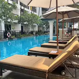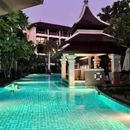 🏨 The hotel is located in Ao Nang, Krabi, in the heart of Ao Nang, just five minutes from Ao Nang Beach. The building is surrounded by a swimming pool. The hotel is large, with 135 rooms. The rooms are spacious, beautiful, and have bathtubs. The equipment is complete. There are many types of rooms to choose from.