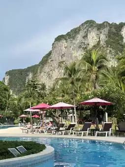 They have floor-to-ceiling windows and private balconies with views of the Andaman Sea or the cliffs. Some rooms are just steps away from the pool.