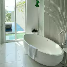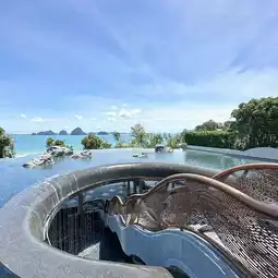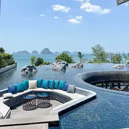 (Banyan Tree Krabi) The latest luxury pool villa hotel on Tab Kaek Beach. It stands out with its beautiful design that combines modern luxury with inspiration from the legend of the Naga of Khao Ngon Naga, Krabi Province, along with impressive service, resulting in a unique luxury hotel.