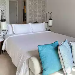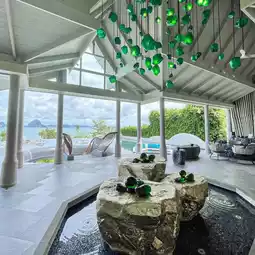 Banyan Tree Krabi is located on a very spacious 26 rai area with a beachfront of more than 300 meters. It is also the last hotel on Tab Kaek Beach, next to Khao Ngon Naga, so it is quite quiet and has high privacy. It was designed in the concept of The Land of The Great Naga, inspired by the local belief in the legend of the Naga of Khao Ngon Naga, which is embedded in every molecule of the hotel's interior decoration. Whether it is the hotel lobby that is like the Reception of The Naga, the Naga stairs leading down to the Emerald City under the water, the Naga table made of gold stone and Naga eggs standing out in the center of the lobby, along with the emerald lamps that are like chandeliers hanging from the ceiling, which can be found throughout the hotel, including inside our guest rooms.