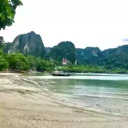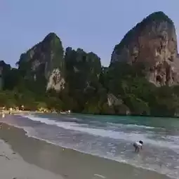 Railay Beach has 2 sides: the east side is the dock. There is no beach. Mostly sandy mud and mangrove forests. The west side has a long sandy beach. It is a parking area for long-tail boats coming from Ao Nang during the day. In the evening, it is suitable for walking, swimming in the sea. There are restaurants and bars to chill. It is a place where the sunset is very beautiful.