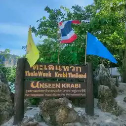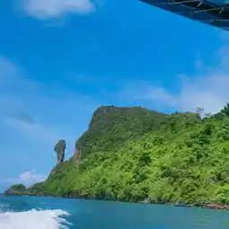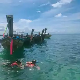 We spend the day exploring four different islands off the coast of Krabi with a private longtail boat charter. The departure starts at Ao Nam Mao to Chicken Island, Poda Island, Thaleh Waek, and Phra Nang Cave. Before you board into a boat you have to pay 200 Baht as entrance fee at National Park. We Enjoyed the views of the towering limestone cliffs and beautiful beaches, and did swimming and snorkeling with the provided equipment. The travel tour included fruit and bottled water and lunch so you don't need to worry about getting hungry and thirsty 🥰. You can pre book this tour online or visiting travel agencies❤️
