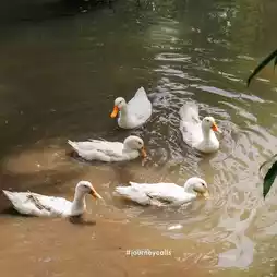 . There is also a fish pond and ducks quack.