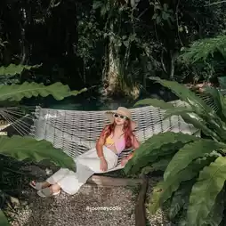 Not far from the stream, you will find a communal swimming pool. Change to lying on a hammock, sunbathe and read a book, which is just right. There is also a cafe next to it. Order drinks and cakes to comfort your little stomach and you will be full. 😋