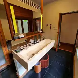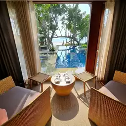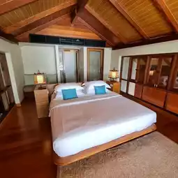 Room: I stayed in the top room of the hotel, the Tubkaak Suite, which is a 2 Bedroom Pool Villa. There is only one on a total area of 300 square meters. It has a private infinity pool with a view of the lush trees and the sea. The villa is divided into 2 bedrooms, 3 bathrooms, 1 living room, and 1 sauna. The two bedrooms are completely separate. A bit difficult, you have to walk through the room to the villa to get to the living room. It is not connected. If you come with friends to socialize, it would be suitable. But if you come as a family with small children, you might have to skip this place.