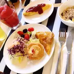 Breakfast is buffet style in a cutely decorated restaurant 🍴