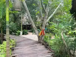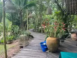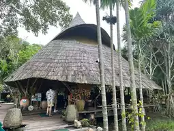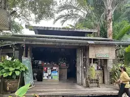 The shop is decorated in a chill and comfortable style. The high roof allows good ventilation and is not hot. There are trees surrounding it.