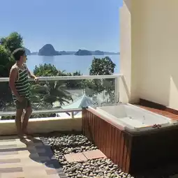 This time we slept in a seaview jacuzzi room. This room has complete comfort, strong water, beautiful view, seeing Tubkaek beach with a beautiful distant mountain view. The internet here also has a strong signal without interruption.