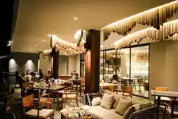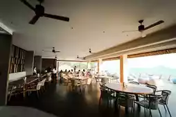 Inside the restaurant, the atmosphere is airy and comfortable, decorated in a sumptuous modern style. On the view floor there was a stunning sunset view atmosphere. The restaurant has very nice decorations, it's a very good place to see the sunset.