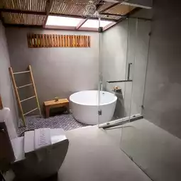 Delicious breakfast, easy to find food. Super chill accommodation, villa style, located amidst the beautiful and unique limestone mountains. Quiet and surrounded by nature. Inside the resort itself, there are many activities to do, such as swimming in the central pool with a beautiful limestone mountain backdrop. Or if anyone is into spas, there is also a service. Or if anyone likes to do activities, wanting to go to the islands, there is a booking service. Very convenient. Anyone who wants to relax in a natural style, beautiful views, good service, complete facilities, I recommend this place.
