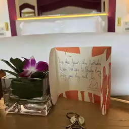 I stayed in beach villa no.3, one room for 4 nights. In fact, the villa is large, strong, and modern. It is different from other wooden villas. This reduces the anxiety of the wood grooves and the sound of the wood. But the only problem is the paint pattern. They probably thought this picture was the best. The toilet is Japanese style. There is a touch screen with various systems at the head of the bed. There is a ceiling fan that is cool and comfortable. But I brought my own fan. 😅 The bathtub is larger than usual. The bathroom is not stuffy at all. Drinking water is refilled in many bottles. Soap and shampoo are a bit difficult to use and tend to fall and break all the time. It should be installed like in spas 😂