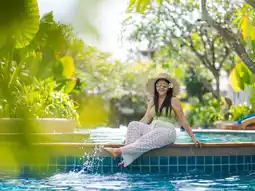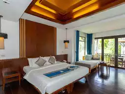 The room is spacious and comfortable, Deluxe Pool Side, Nuch stayed in the zone with a swimming pool in front of the room, walking down from the 2nd floor to the pool. There is a work area and a balcony to sit and relax.