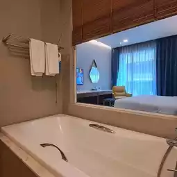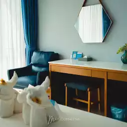 May stayed in the 𝗣𝗼𝗼𝗹 𝗔𝗰𝗰𝗲𝘀𝘀 room, a view of the swimming pool, decorated in blue and white tones, bright, clean, very comfortable room, spacious, stayed for a long time, 3 days.