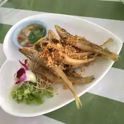 Fried pork belly with fish sauce. This was good. It was crispy and soft, easy to chew, and had a nice salty taste.