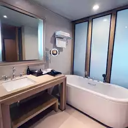 The resort was spacious with bath touch and bath amenities . The resort facilities were great. A lovely place to spend time within the resort .