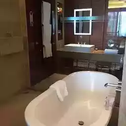In the room, there is a bathtub, complete amenities, a very soft bed, a spacious room in a very natural style. There is a cute welcome drink in every room.