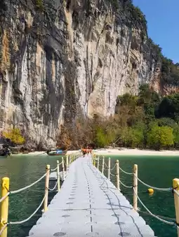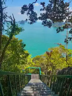 🏝 Koh Hong, also known as Koh Lao Bi Leh, is an island with beautiful scenery. The highlight is the beach in front of the island that curves almost into a half circle. It is shady with a forest of beaches behind. The sea water here is emerald green. There is a 360-degree viewpoint. Walk up the stairs for about 400 steps. The 360-degree viewpoint on Koh Hong is the highest new viewpoint in Andaman. Koh Hong is actually a mountain range that has sunk and then emerged as a view of the towering limestone peaks. Take a boat to take pictures. You can find many angles to take pictures. I really recommend coming here. It is worth the beautiful view. You can also snorkel and see fish.