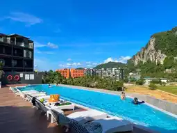A hotel in the heart of Ao Nang Beach, just a 6-minute drive from the hotel to the beach. The atmosphere inside the hotel is great for relaxation. There are 2 swimming pools downstairs and a pool on the rooftop with a beautiful view of the sea, Ao Nang, and Koh Poda. The rooms are spacious, clean, airy, and comfortable. The facilities are complete. In the evening, go up to the rooftop bar for a drink. There is a Happy Hour 🍸🍹🍷🍻 at an affordable price. There is also a fire show in the hotel. At the pool downstairs, enjoy watching the fire show. It is considered a good and perfect stay. For those looking for accommodation near Ao Nang Beach, I recommend this place, Panan Krabi Resort.