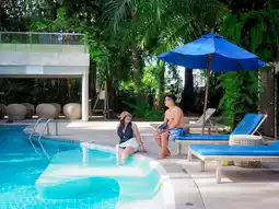There is also a pool bar at the swimming pool. You can swim for fun or sit and relax, soak in the water and sip drinks.