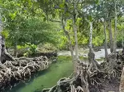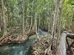 Tha Pom Klong Song Nam is a tourist destination that has been preserved and is rich in natural resources. Tourists can now comfortably walk around the nature trail as there are footpaths around the mangrove forest. The highlight of this place is the crystal-clear water, the cool atmosphere, and the lush green trees. Those who want to play in the water or kayak can contact the staff directly.