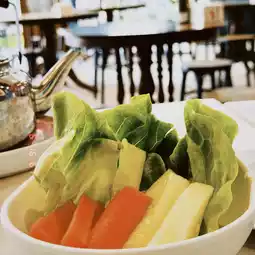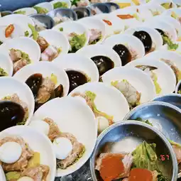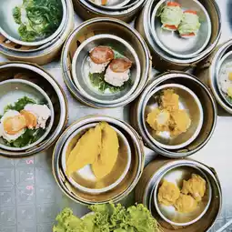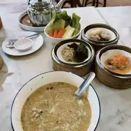 A dim sum restaurant located in a PTT gas station, Nuea Khlong. Mon O Cha is decorated in a retro Chinese style. The shop is beautiful and has a photo corner. The food has dim sum, congee, dry rice soup, pork blood soup, bak kut teh, and a variety of drinks to choose from. There are seats in the shop without air conditioning and seats outside the shop.