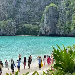 I visited this famous Maya Bay Beach as part of the Phi Phi Island Tour from Phuket. There is a 5-10 min walk along the trail before you reach the beach. The beach is stunningly beautiful and definitely the prettiest beach I have been to. Unfortunately swimming is not allowed here. The famous Leornardo Di Caprio movie has been shot here. There is an entry fee to the National Park which must be bought to visit this beach.
