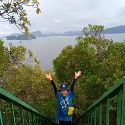 Travel by ferry from Noppharat Thara Beach. It doesn't take long to get to the 360-degree viewpoint of Koh Hong. You only have to walk up 419 steps!!! You still have energy left to play in the water!!! From the viewpoint, you can see the turquoise sea🏞 amidst the lush green forest🌳, white sandy beaches, gentle waves, and dozens of small islands in the middle of the Andaman Sea.