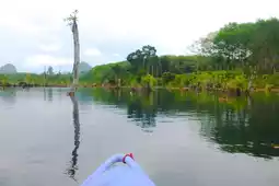 Khlong Hrud or Khlong Nam Sai is located in Nong Thale Subdistrict, Mueang District, Krabi Province, which is sometimes called Khlong Hrud, Nong Thale, which is located in a different place from Nong Thale, which is the morning mist. Khlong Hrud has about 5-7 kayak service providers, with the same service fee. In front, there is a large parking lot. Park your car and walk to buy a ticket for a kayak. The rental fee is 300 baht per boat, but if you want an officer to row for you, it is an additional 100 baht, totaling 400 baht. If an officer rows for you, there is an advantage: along the way, they will provide information about various aquatic plants and point out many beautiful spots. #Khlong Hrud #Krabi